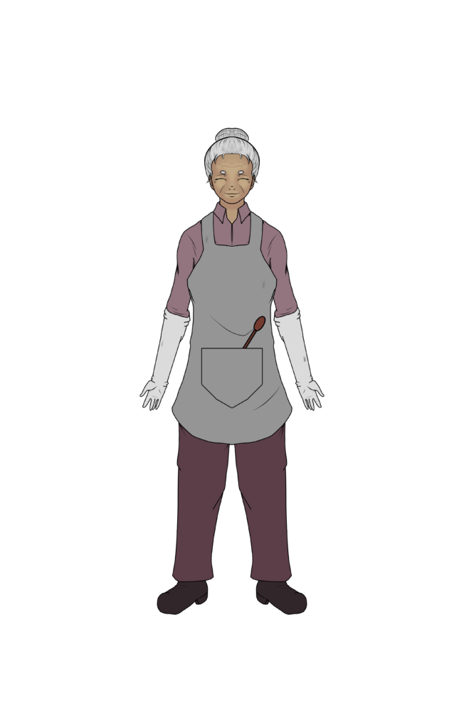 Amável, atenciosa e experiente, sempre pronta para ouvir e oferecer conselhos.Tem uma postura acolhedora e maternal, é conhecida por tratar todos com gentileza. Cozinhar pratos tradicionais e confortáveis para todos ao seu redor.Manter uma conexão relaxante com as pessoas que a cercam, sendo uma figura amigável e de confiança.